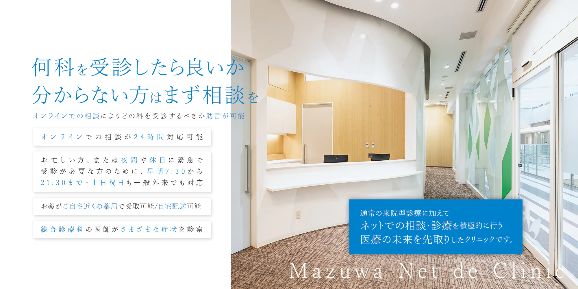 何か症状があれば、クリニックに来ていただければいいのですが、お忙しい中でなかなかクリニックに行く時間が取れない、何科にかかればいいのか分からない患者様も数多くいらっしゃいます。そこで、まずはお気軽にオンラインでご相談ください。